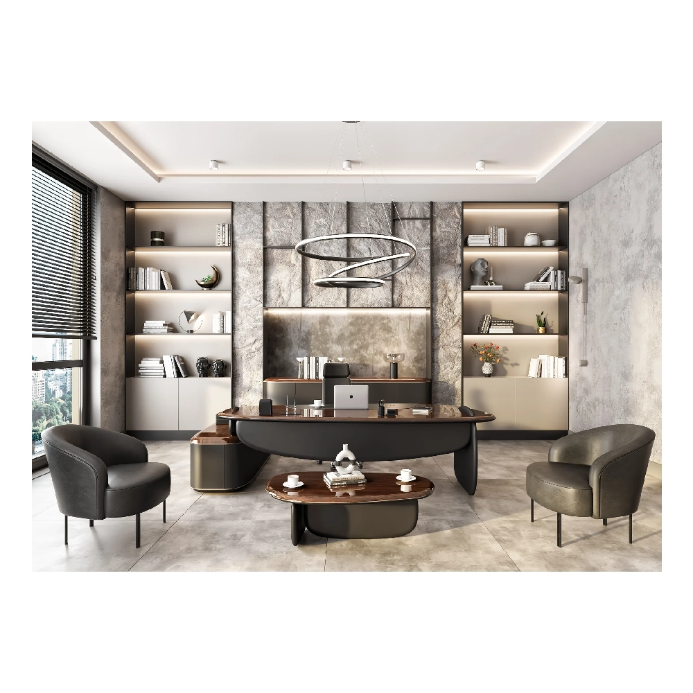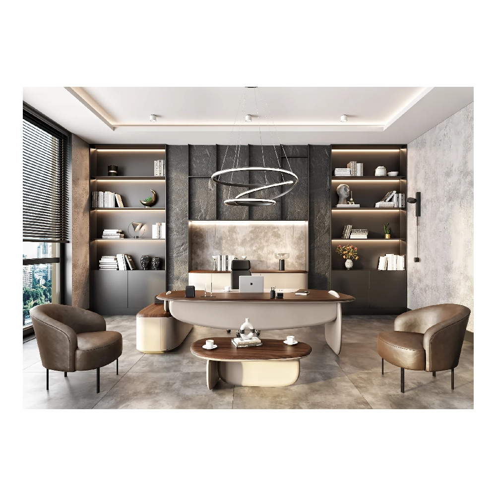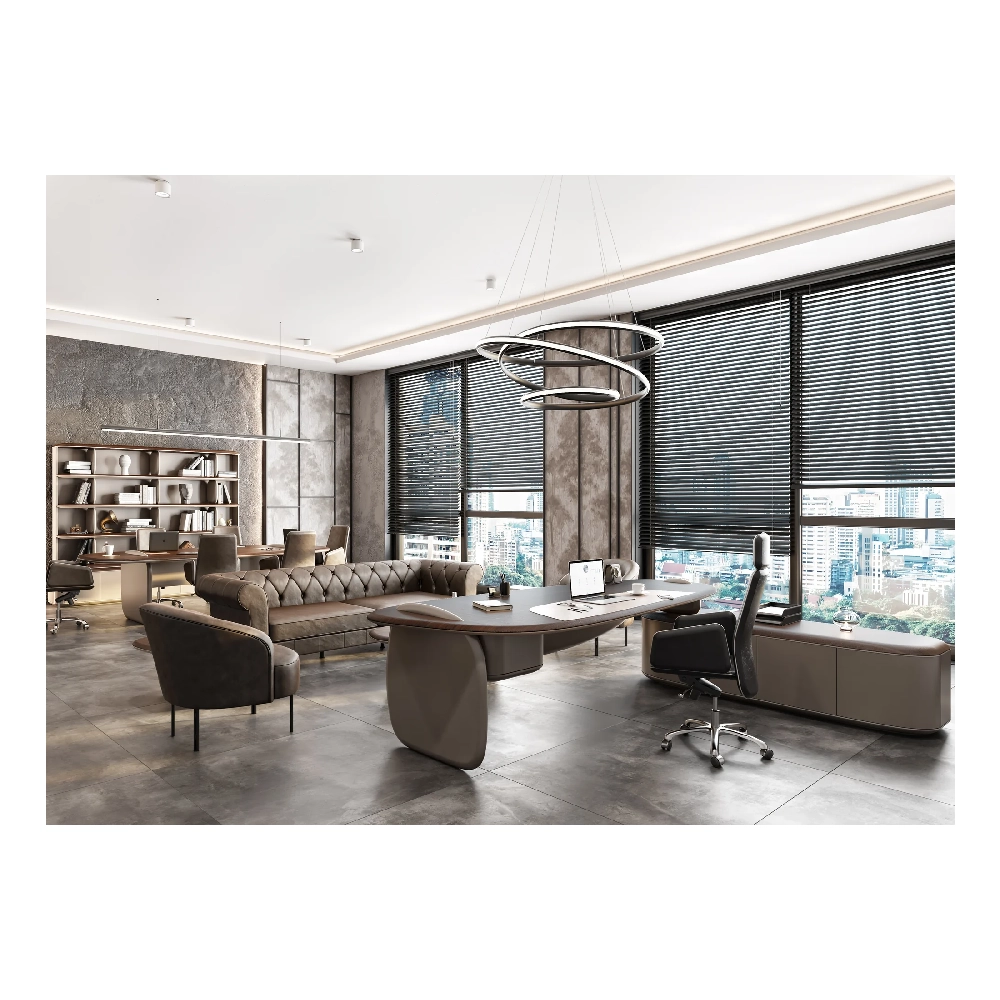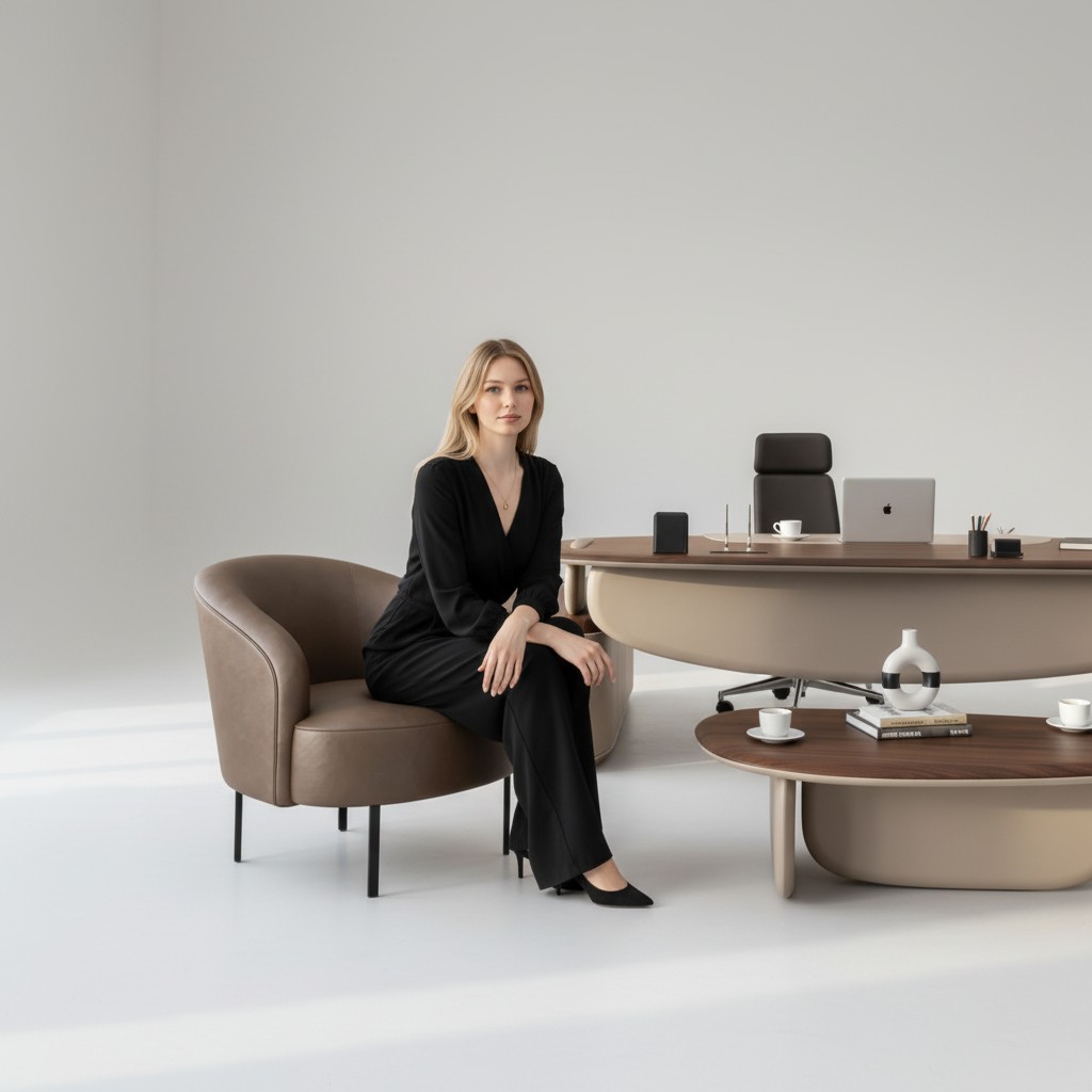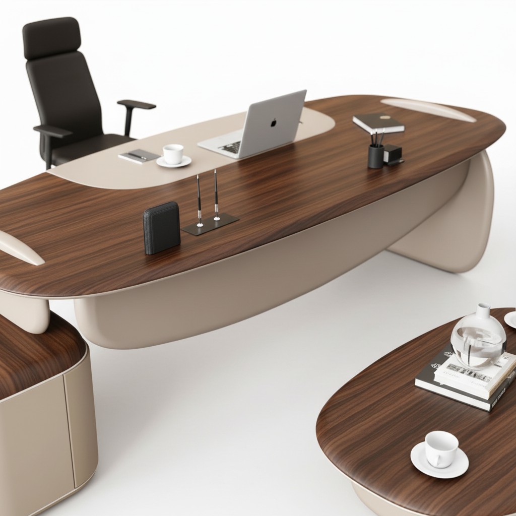 STONE Yönetici Ofis Takımı, sade ama güçlü tasarım diliyle modern ofisler için zarif ve dengeli bir çözüm sunar. Yumuşak geçişli oval hatlara sahip masa formu, mekâna akıcılık kazandırırken doğal renk tonlarıyla sıcak ve davetkâr bir atmosfer oluşturur.